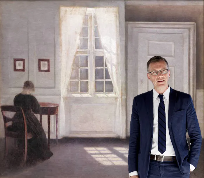 Vilhelm Hammershøi’s painting Interior in Strandgade. Sunlight on the Floor, 1901 https://open.smk.dk/artwork/image/KMS3696 and SMK’s director Mikkel Bogh exposed to Deep Painterly Harmonization.